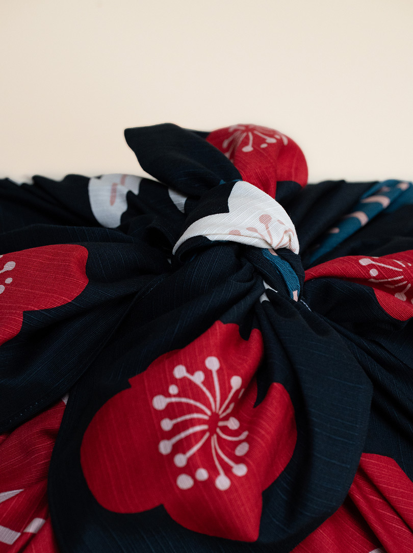 Your cotton furoshiki can be washed in a household washing machine set at a low temperature and slow spin cycle. There will be no shrinkage and almost no colour loss, but the colour may fade when washed for the first time – we suggest washing it separately for this reason.