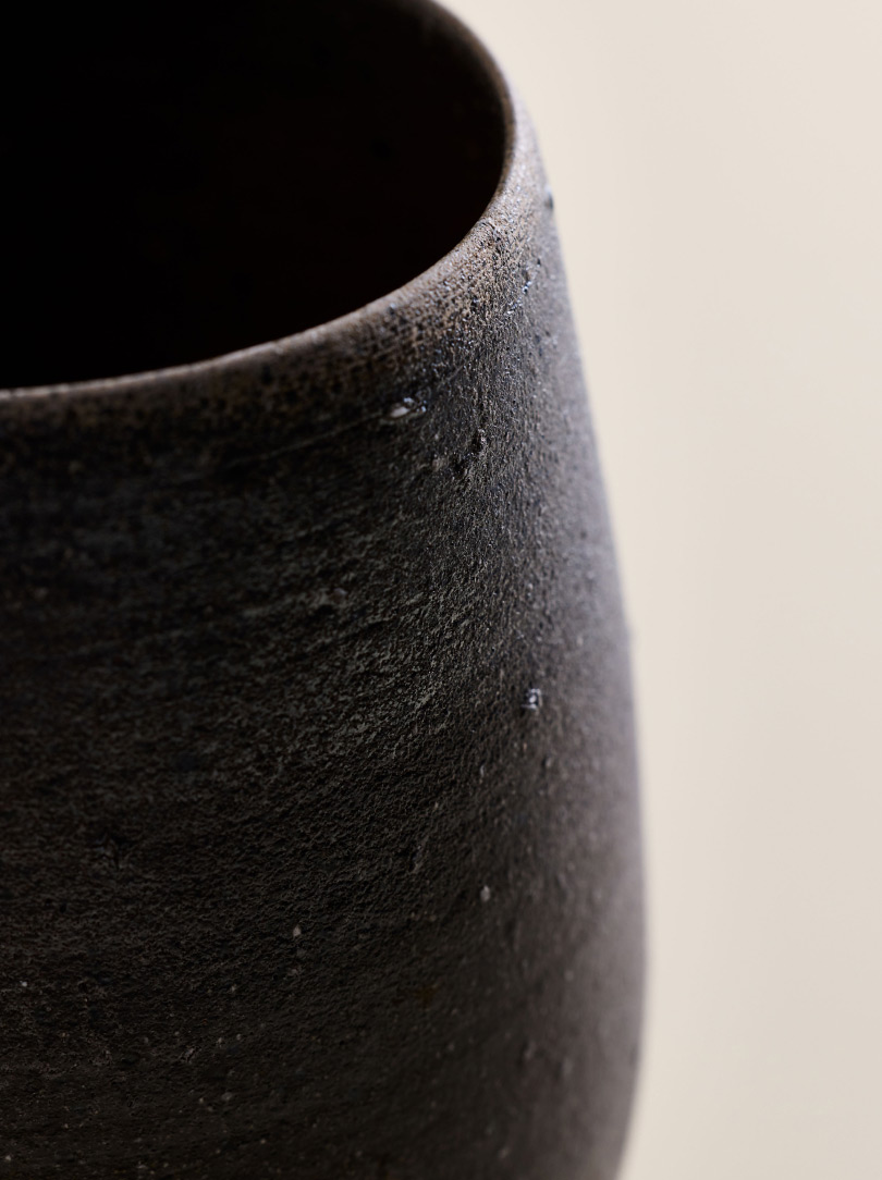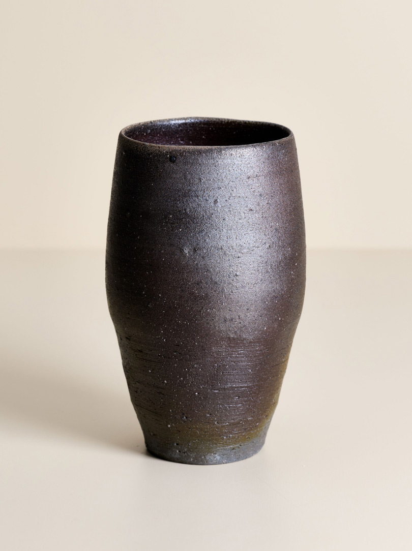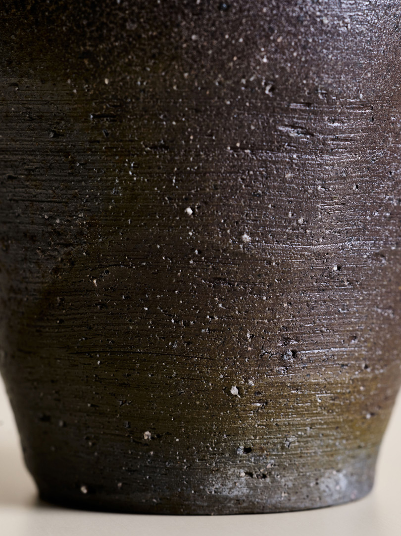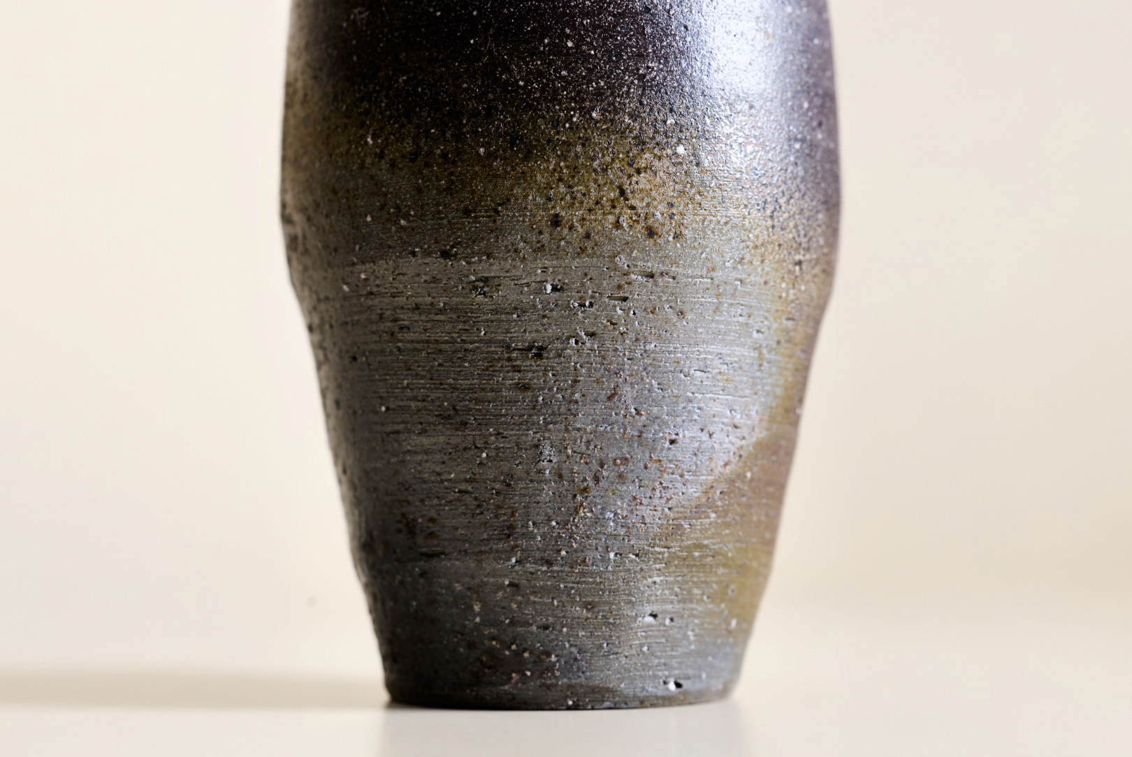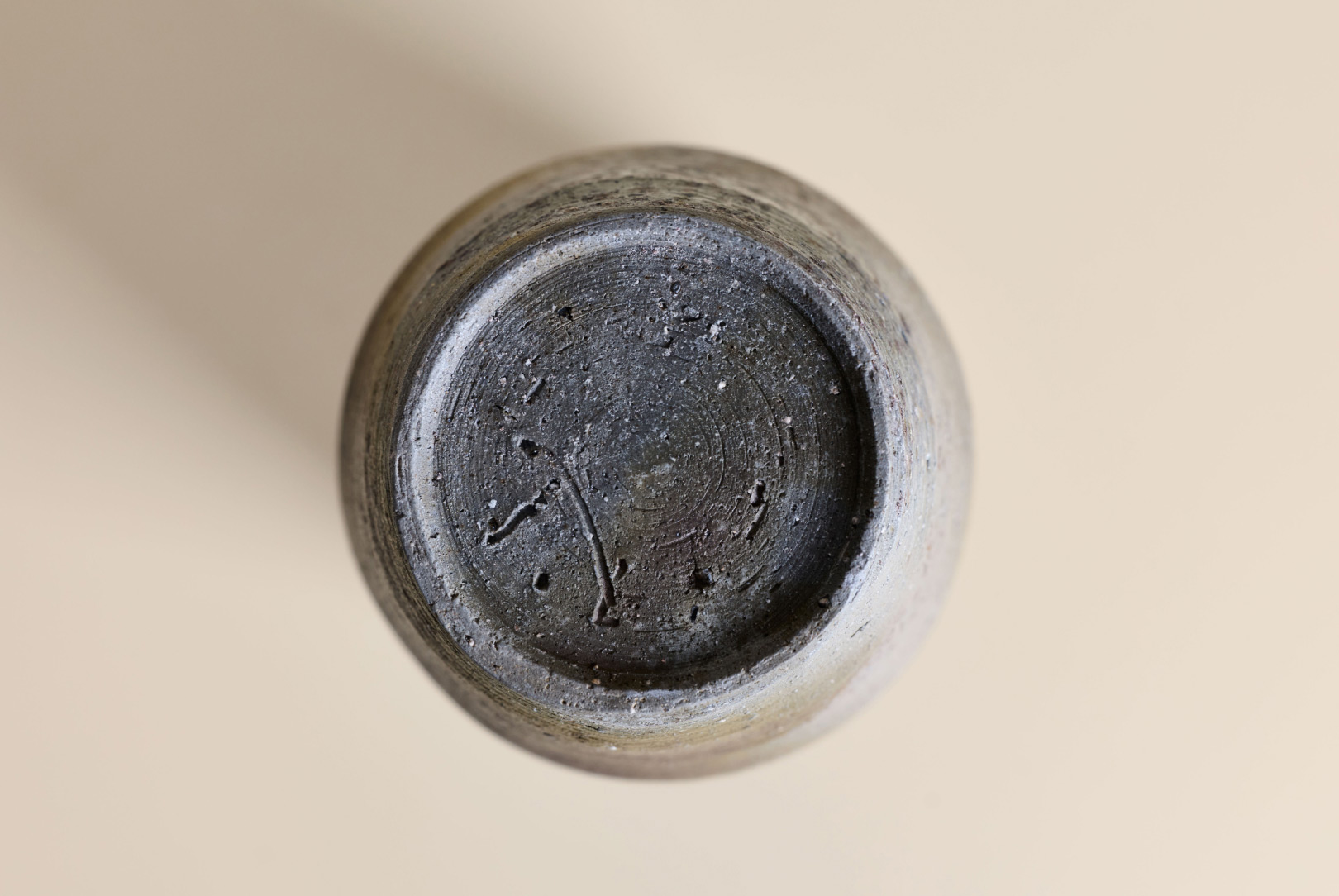 Defined by its upright proportions, this Bizen vase brings a sense of lightness and lift despite its solid material. Its unglazed surface leans towards grey-brown hues rather than the warmer reds seen elsewhere in Hitoshi Morimoto’s pieces, with layered colour and fine texture shaped by the firing process.