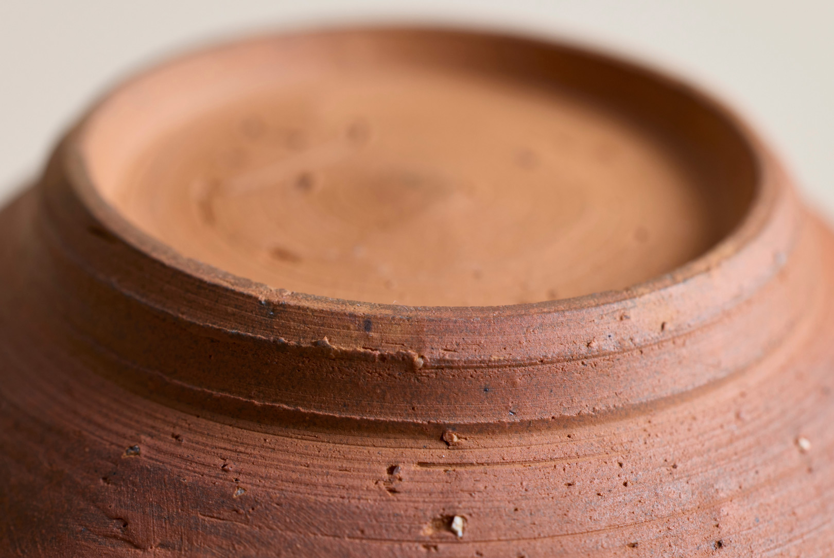 Bizen ware is made for everyday use and becomes smoother and more pleasant to the touch over time. It can be cared for like other ceramics and cleaned with a firm brush, which helps keep the surface fresh. Neutral detergents are also safe to use. Traditionally used for water jars and grain storage, Bizen ware has long been associated with water, and many find that water stored in it keeps well. If you notice cracks, chips, or deep scratches, discontinue use, as these may weaken the piece and lead to breakage.
