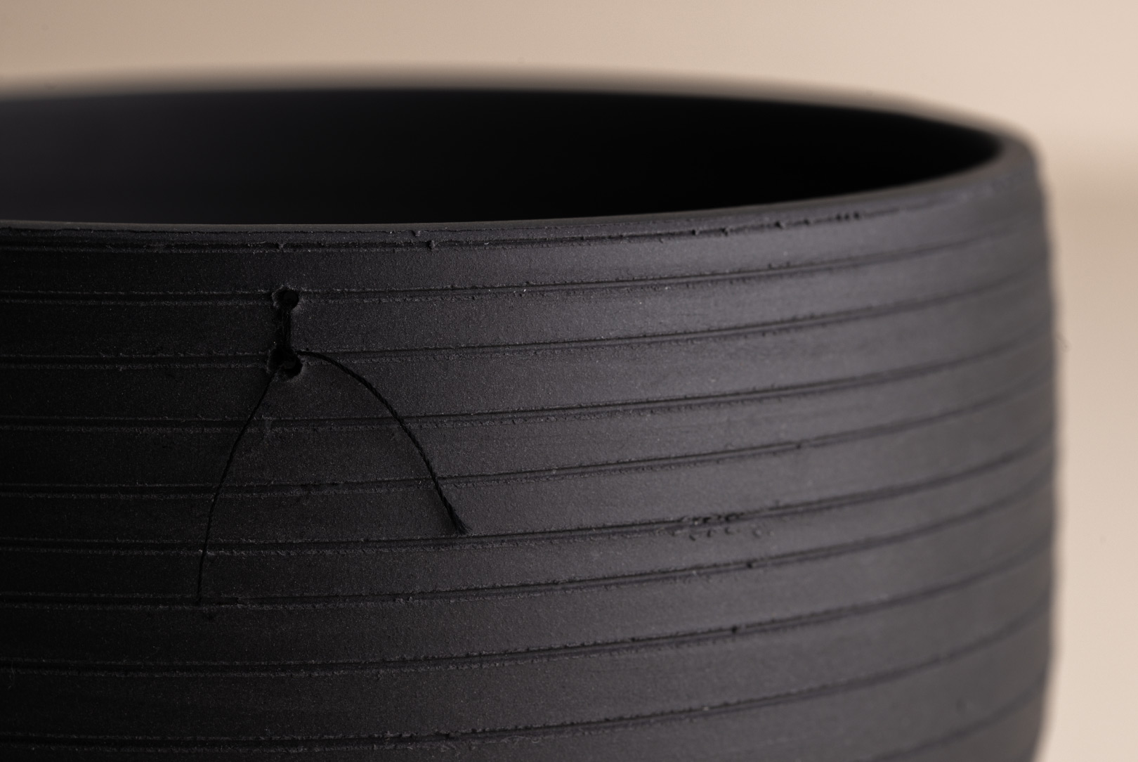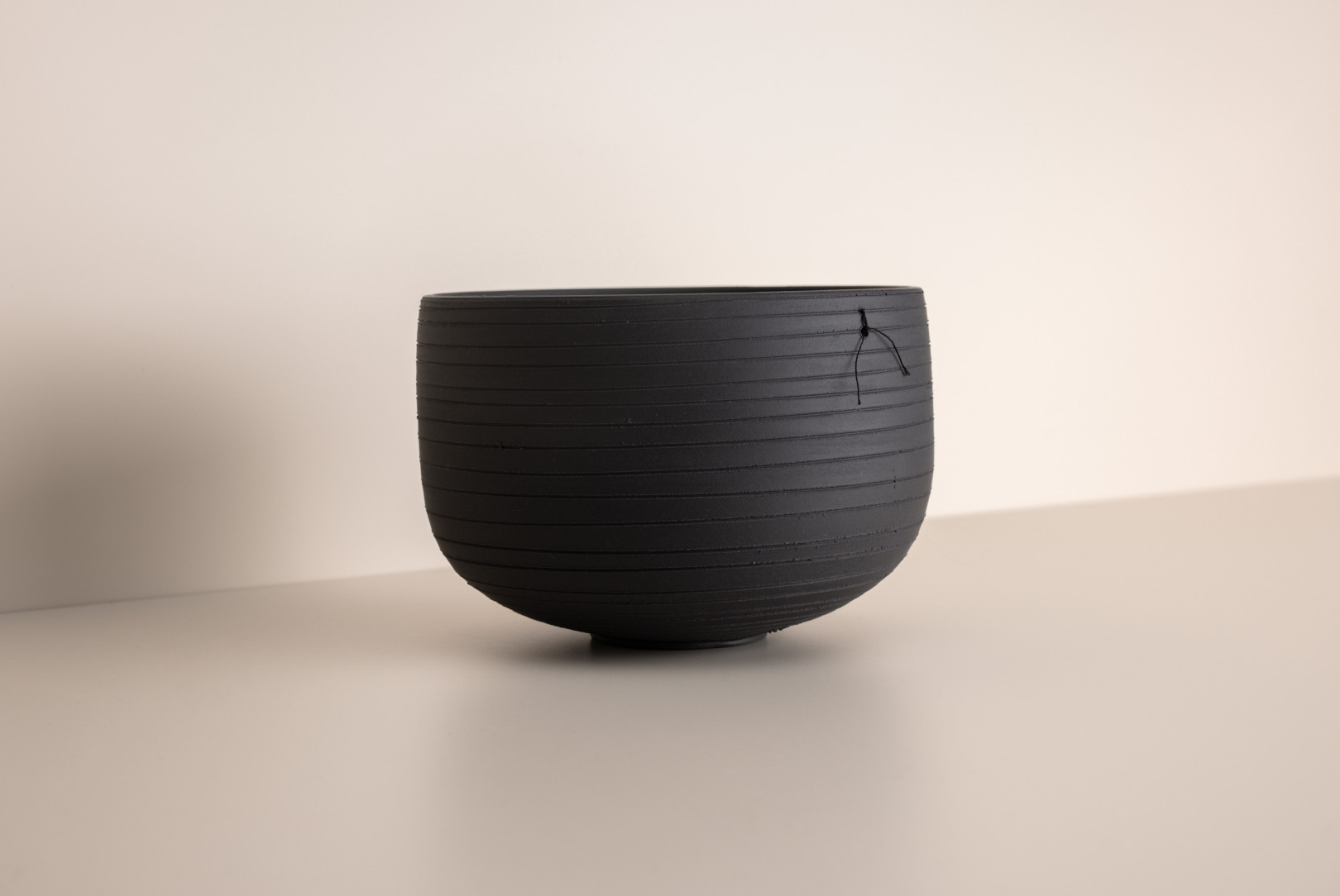 Once you hold this vessel in your hands, you won’t want to let it go. Your fingertips will find solace tracing the layered, lined structure of its exterior. The asymmetrical gaps between the lines reveal the care and sculptural knowledge woven into its crafting, adding allure to a piece that feels nothing short of perfect. It captures the essence of finest artisanal craftsmanship, celebrating a profound connection with every singular piece which exists only once.