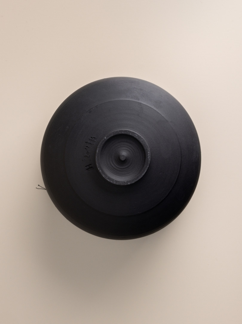 This piece features an accompanying black thread, a recurring motif in Helga Ritsch’s work. This unexpected object of daily use seamlessly integrates with the vessel and adds more character to it. Over time, this delicate decorative element might detach itself from the vessel – a “loss” that isn’t truly a loss, as it symbolises your ongoing appreciation and use of the piece.