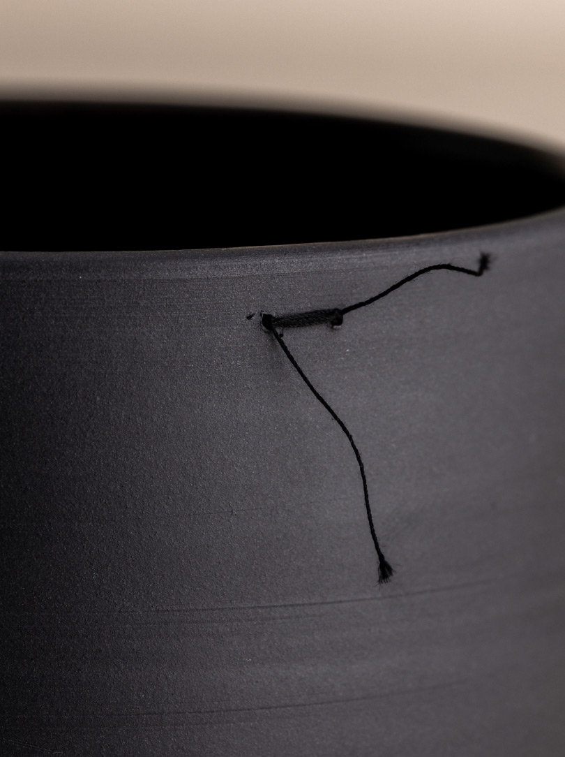 This piece features an accompanying red thread, a recurring motif in Helga Ritsch’s work. This unexpected object of daily use seamlessly integrates with the vessel and adds more character to it. Over time, this delicate decorative element might detach itself from the vessel – a “loss” that isn’t truly a loss, as it symbolises your ongoing appreciation and use of the piece.