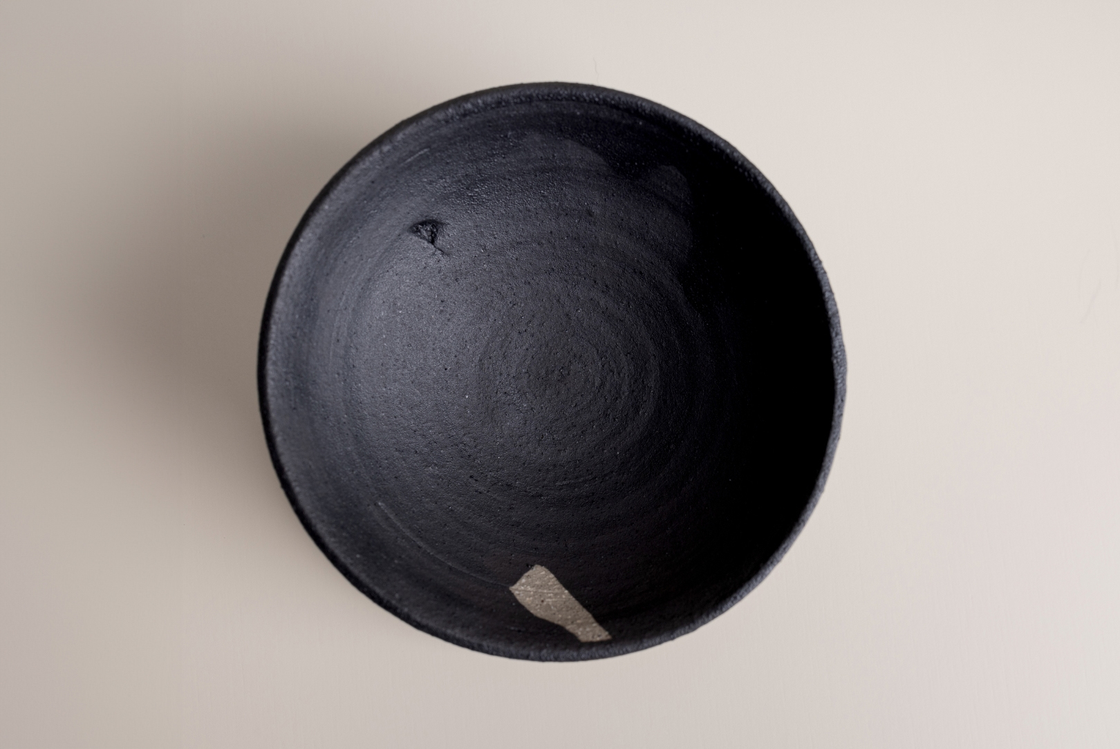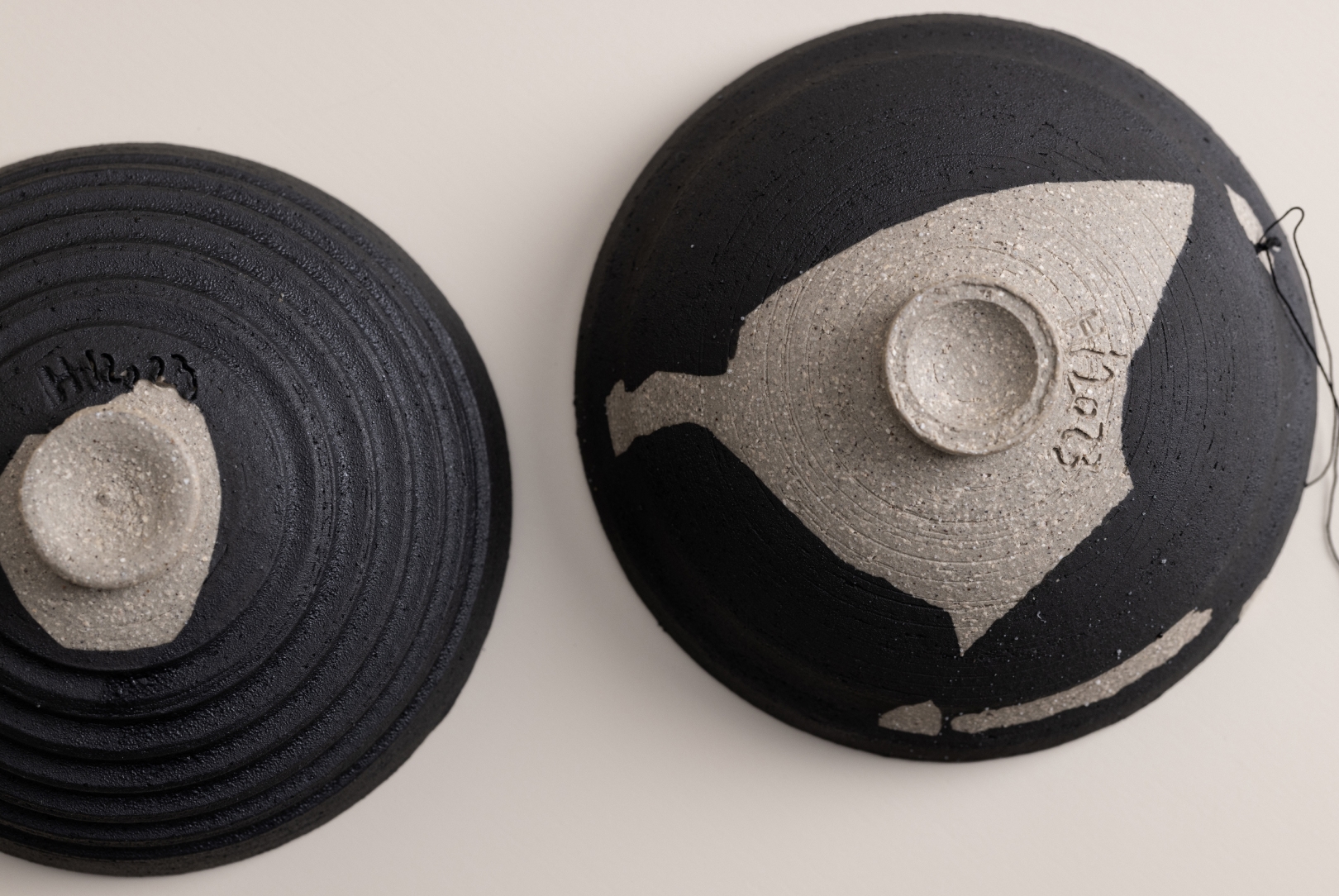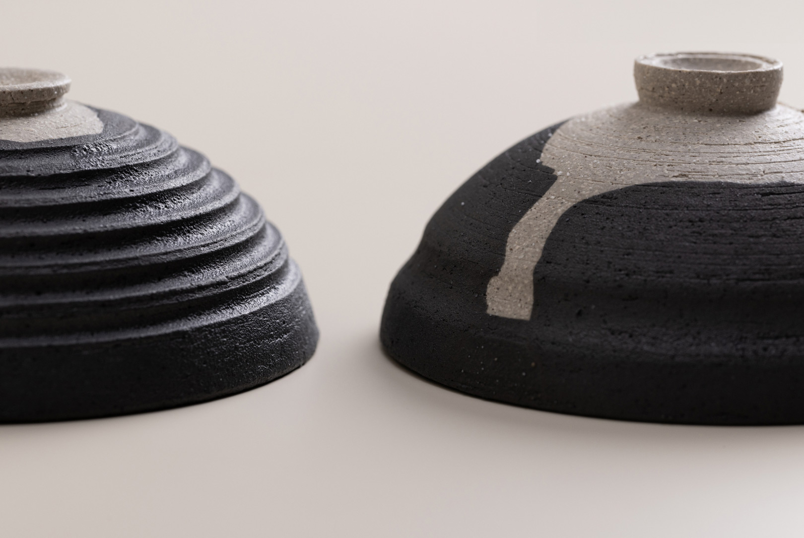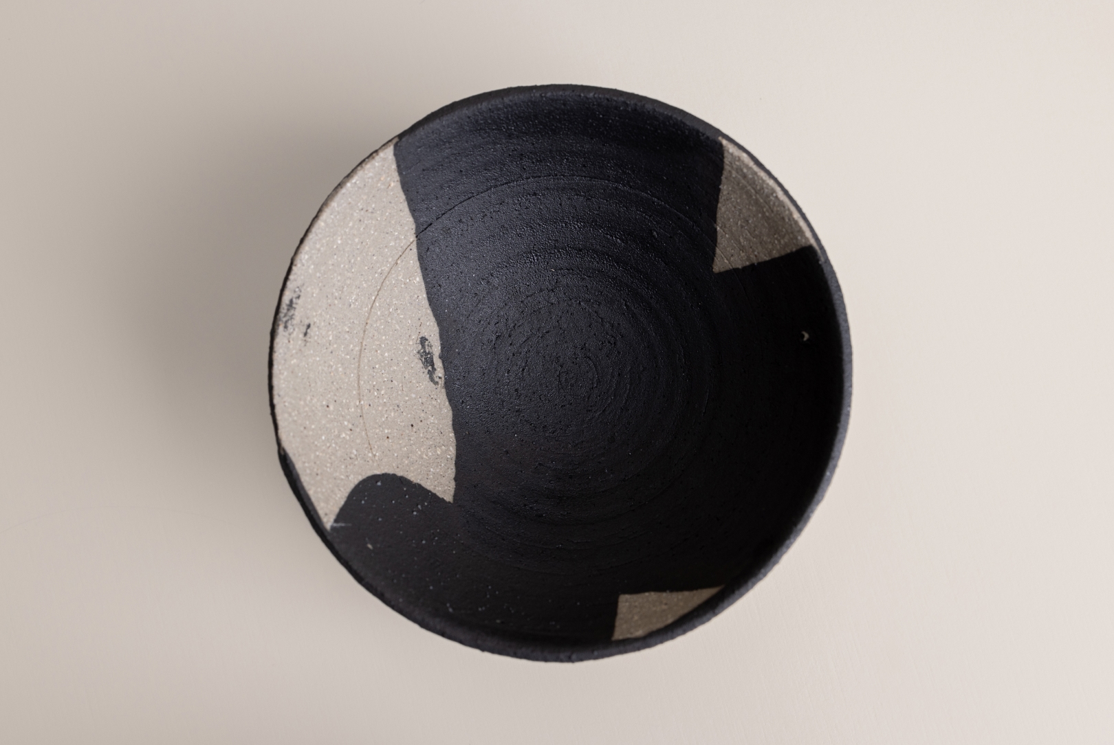 This classic pairing, a drinking bowl and its accompanying saucer, acquires a poetic allure. The textured stoneware beautifully complements the duo’s delicate appearance. Individually crafted, each creation is adorned with black engobe, creating an additional interplay between materials, colours and forms. Crafted individually, each piece embodies a unique form and identity, shaped by the artist‘s intellectual and physical interaction during its creation. Designed to nestle effortlessly in your hands, it promises an experience that balances comfort with aesthetic pleasure.