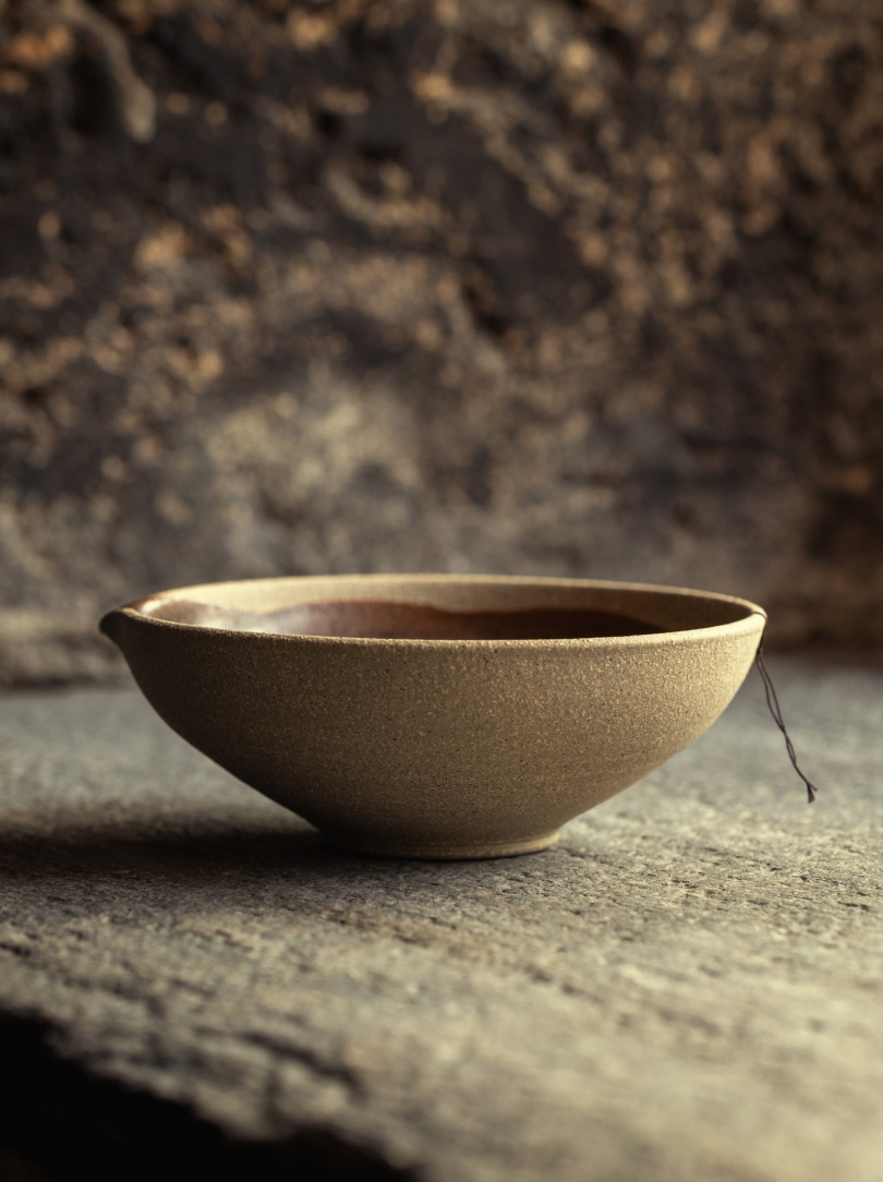 A beak bowl you’ll actively seek out uses for, just to admire its perfect form and the exquisite interplay between the sand-coloured stoneware and the black-coloured engobe. Uniquely crafted, every piece of the group of six is one of a kind.