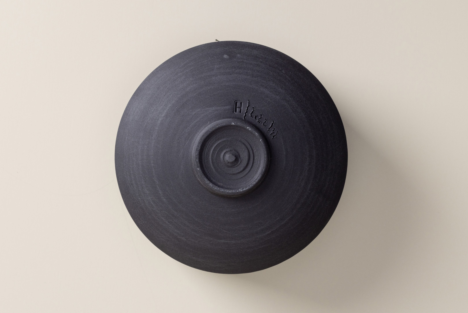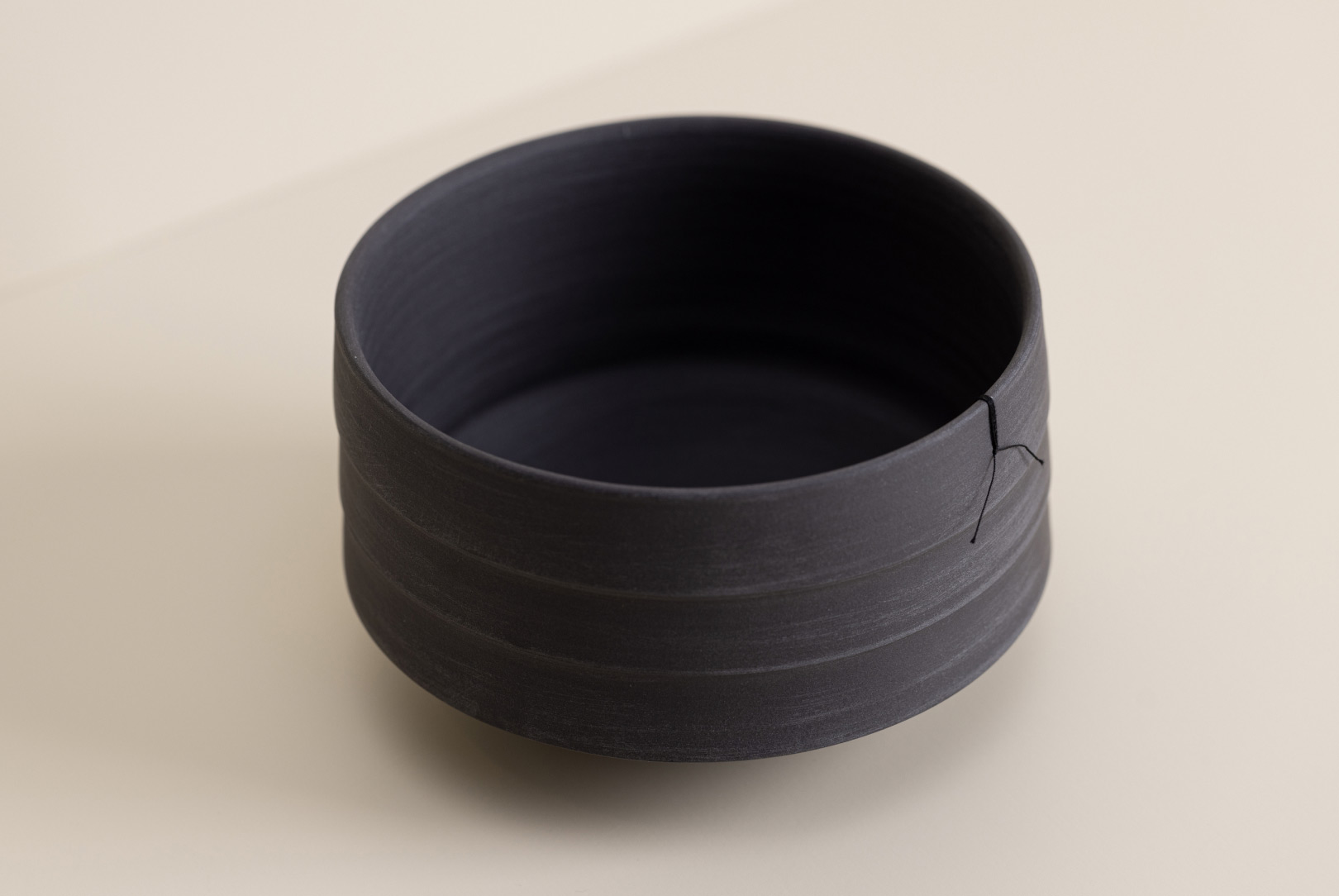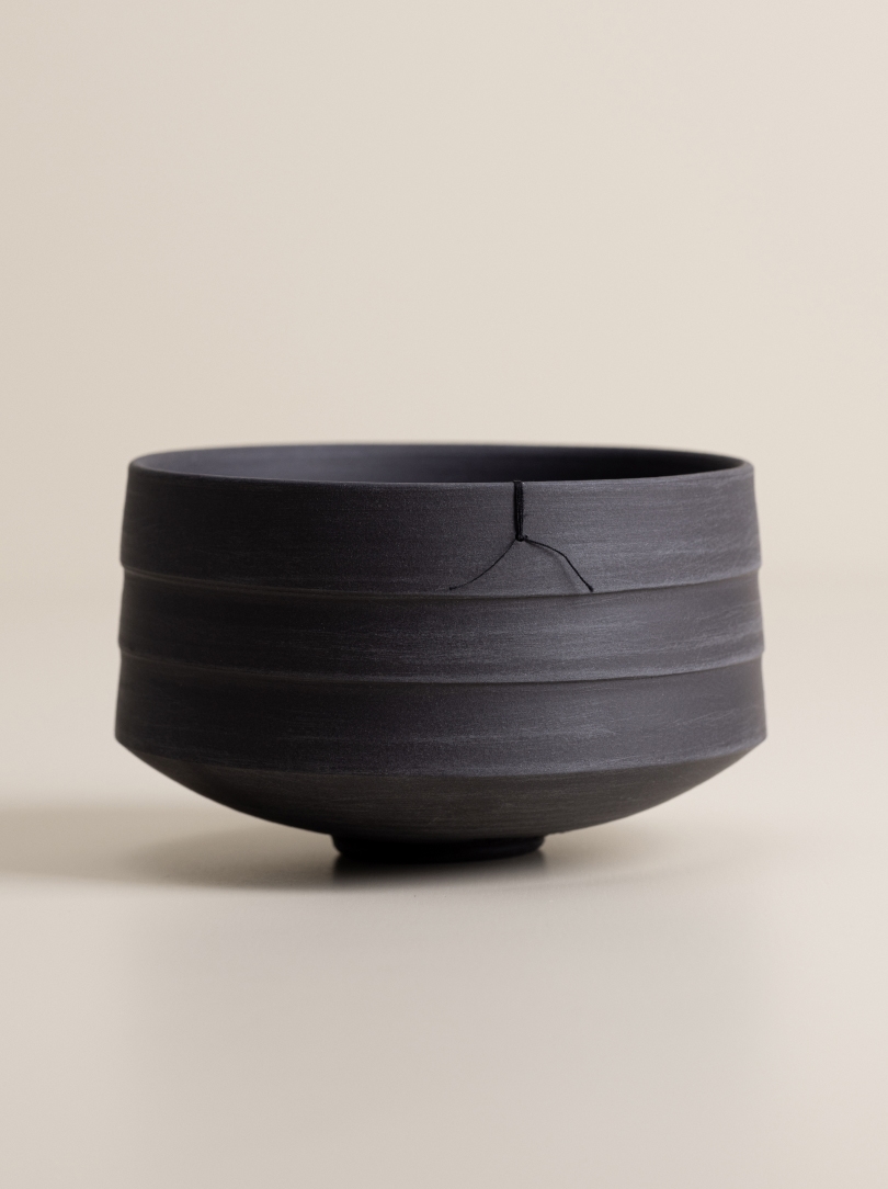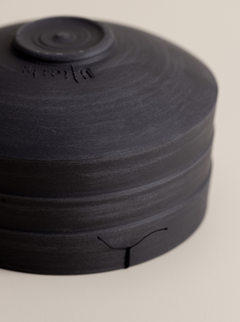 This piece features an accompanying black thread, a recurring motif in Helga Ritsch’s work. This unexpected object of daily use seamlessly integrates with the vessel and adds more character to it. Over time, this delicate decorative element might detach itself from the vessel – a “loss” that isn’t truly a loss, as it symbolises your ongoing appreciation and use of the piece.