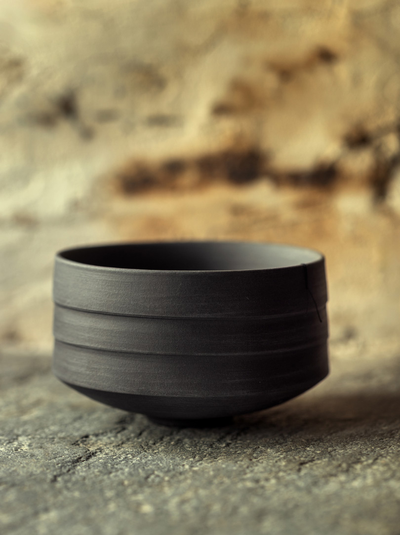 The matcha bowl bears the artist’s signature and stamp, and is created at her atelier, located within her 400-year-old home in Soazza, a village of just over 300 inhabitants nestled in the Swiss mountains.