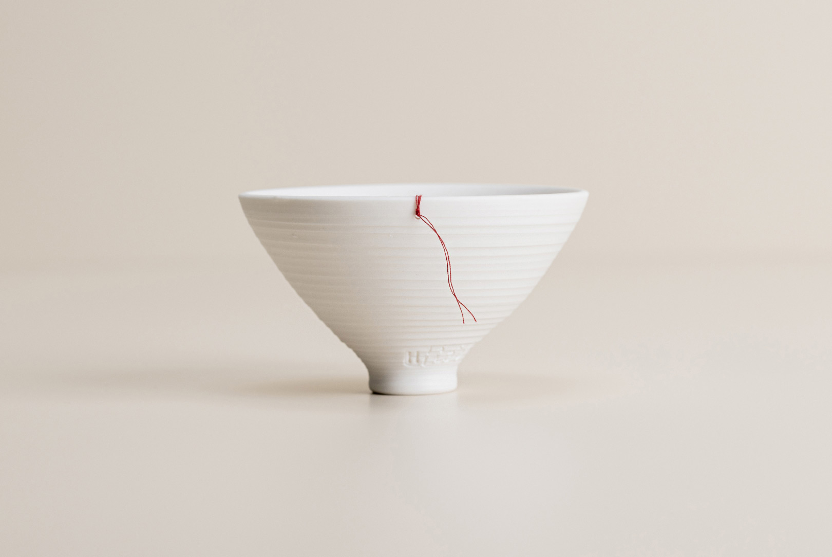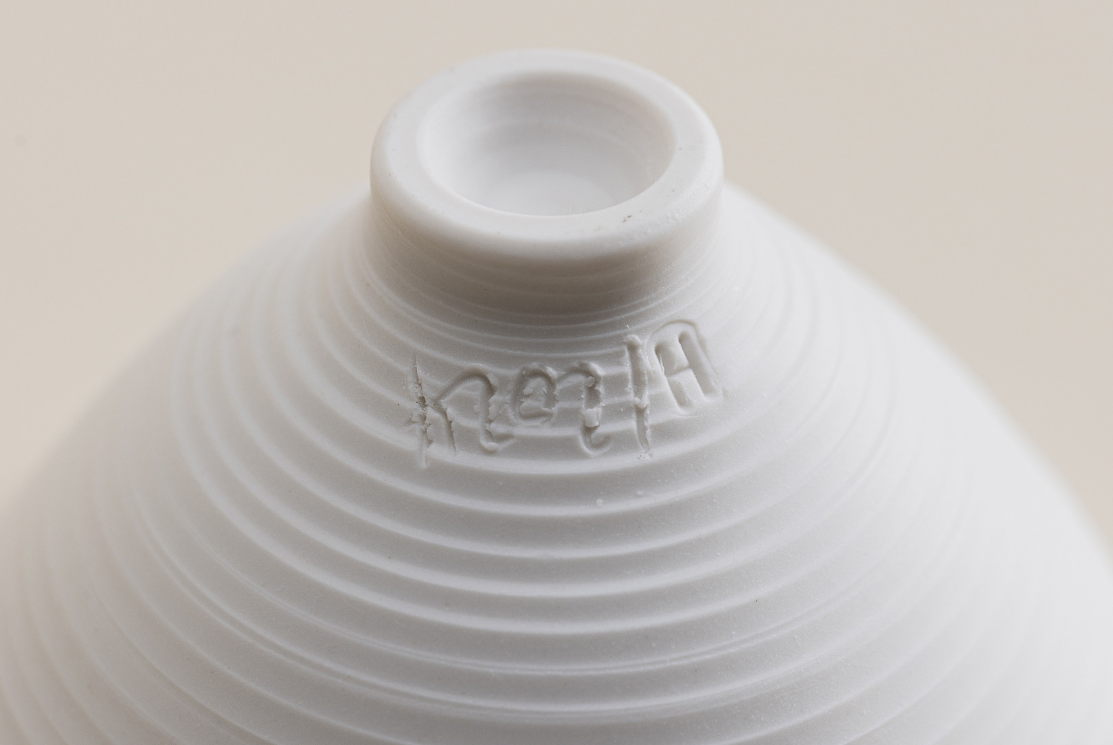 This small cupped vessel is testament to Helga’s intimate connection with the turning wheel and ceramics. The organic pattern of grooves on the exterior, though not mathematically symmetrical, exudes a sense of absolute perfection as it gracefully accompanies the walls of the vessel, which rise from a small base to a larger opening. Inside, the more pronounced lines shaped by Helga’s fingers reveal the artist's imprint, embodying the gentle human touch and care that go into each of her pieces.
