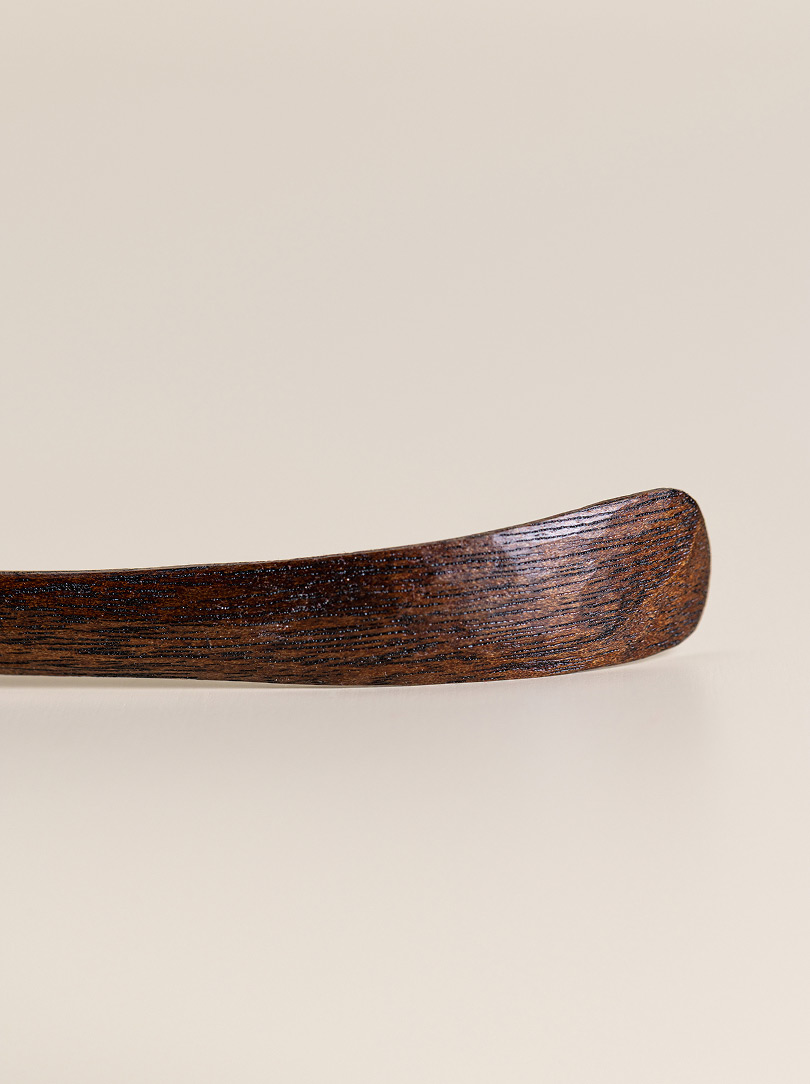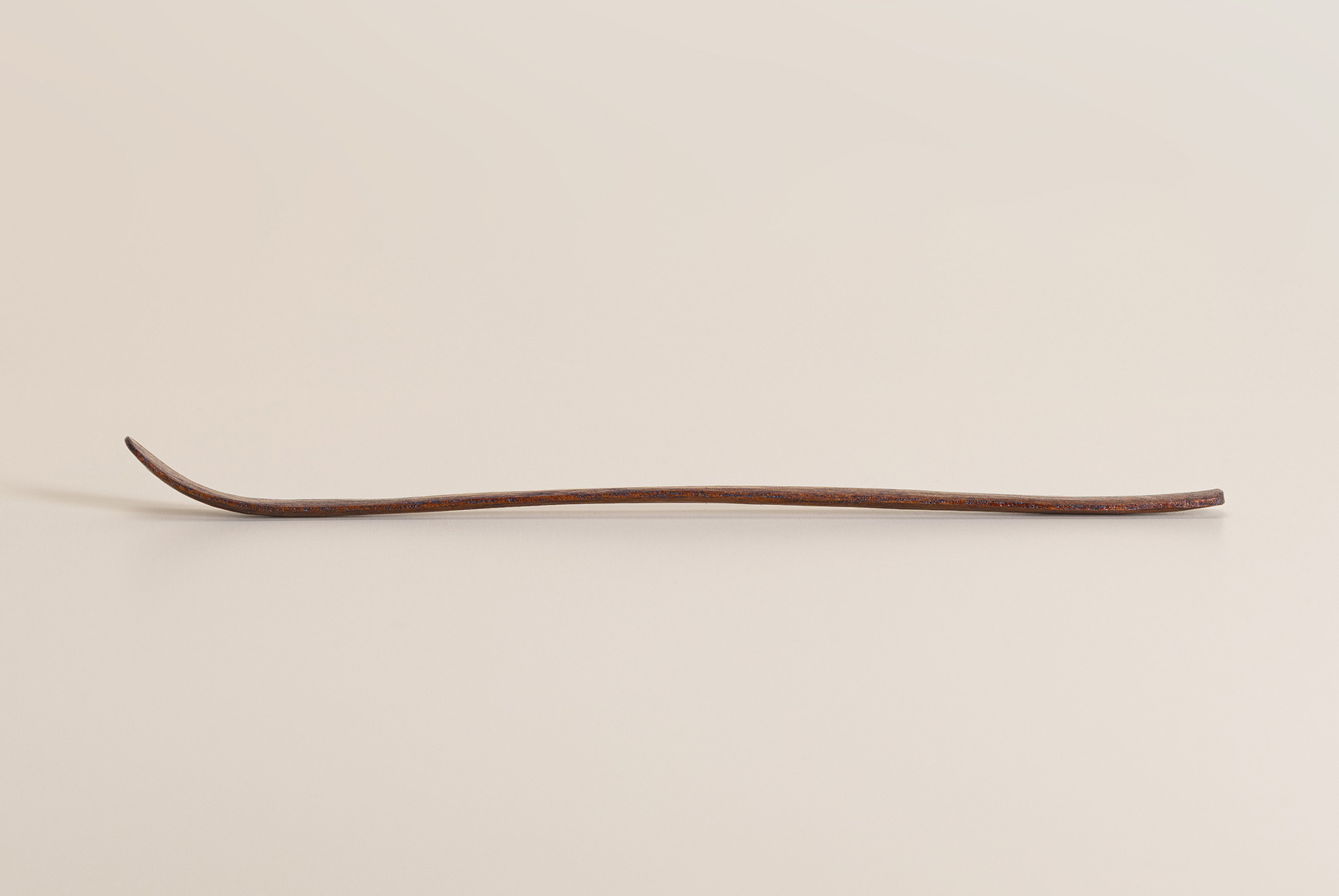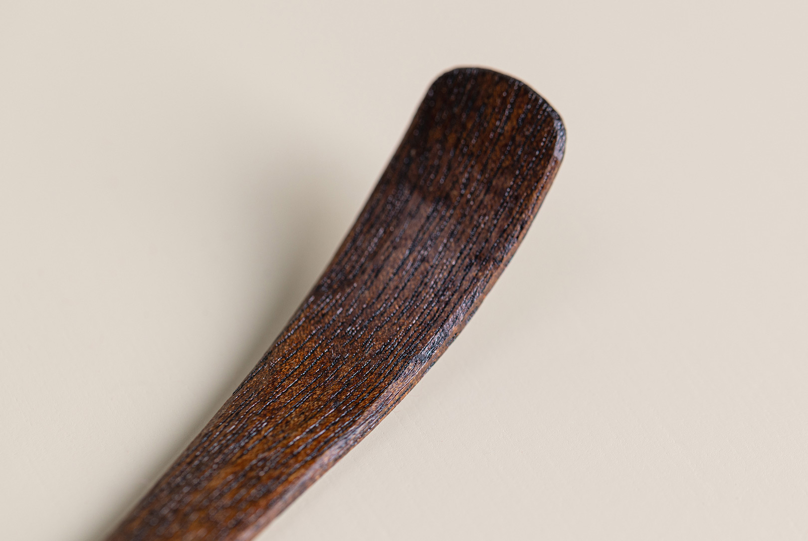 Usually crafted in bamboo, this ‘chashaku’ has been freehand-carved from freshly felled walnut exclusively for AGOBAY. Its slender shape and shallow tip are for scooping matcha powder into a tea bowl – an essential tool in the Japanese tea ceremony. Each spoon is made with patience and care in Samuel Alexander’s open-air workshop in Czechia, through a multi-step process over more than six weeks.