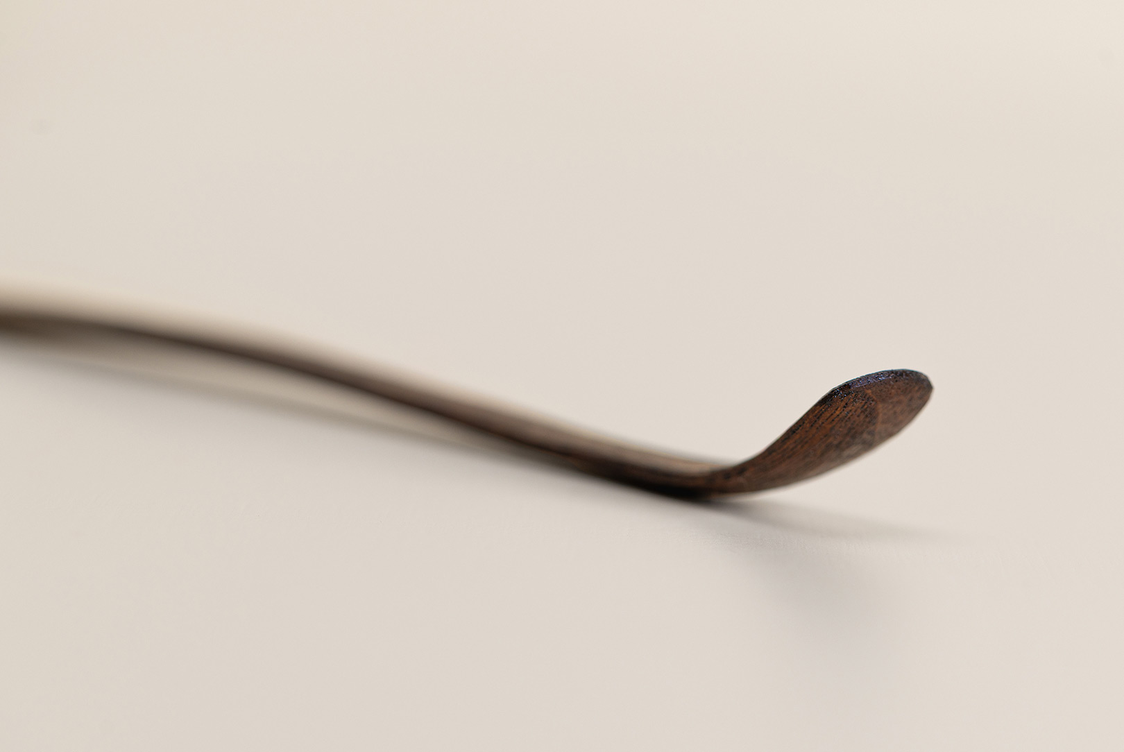 AGOBAY Showroom ZurichAs one of the first pieces in a series of collaborative creations, this walnut matcha spoon has been carved entirely by hand from one piece of wood by Samuel Alexander. The British green-wood carver slowly and patiently makes his collections – which he calls ‘harvests’, as they appear to have grown organically – from his open-air workshop among the fruit trees at home in rural Czechia. Involving more than 10 steps, each piece begins with an initial split in the log, undergoes a two-week drying process, six coats of natural urushi lacquer, which is derived from tree sap, and a month-long curing stage. It is a practice Samuel describes as patient and meditative.